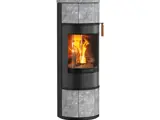 Scan 84-serien kombinerer høy varmeeffekt med et stilrent og moderne uttrykk. Med kleberstein på både sider og topp får du ikke bare et karakteristisk og raffinert utseende, men også en ovn som lagrer varme effektivt. Klebersteinen holder på varmen lenge etter at ilden har slukket og gir en jevn varmeavgivelse – for økt komfort og lavere vedforbruk.